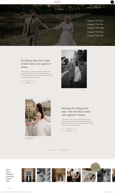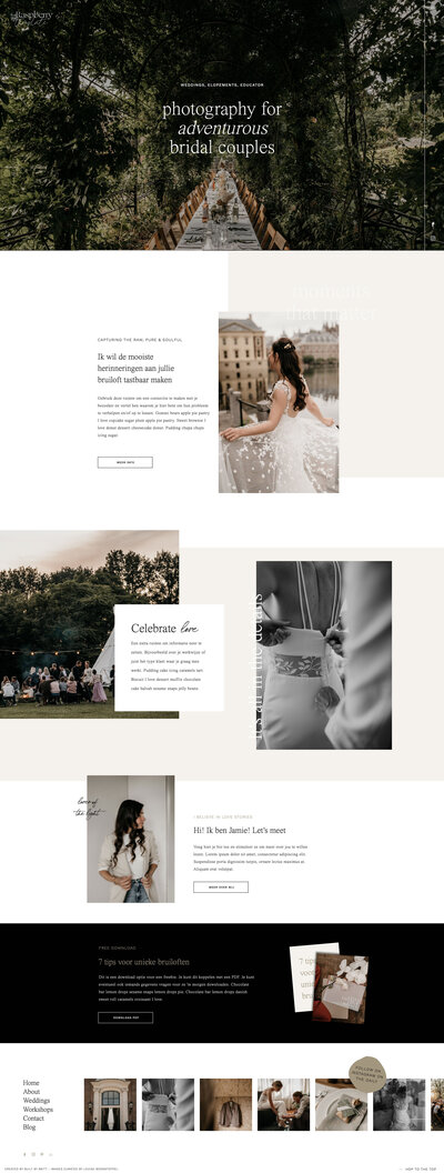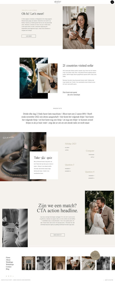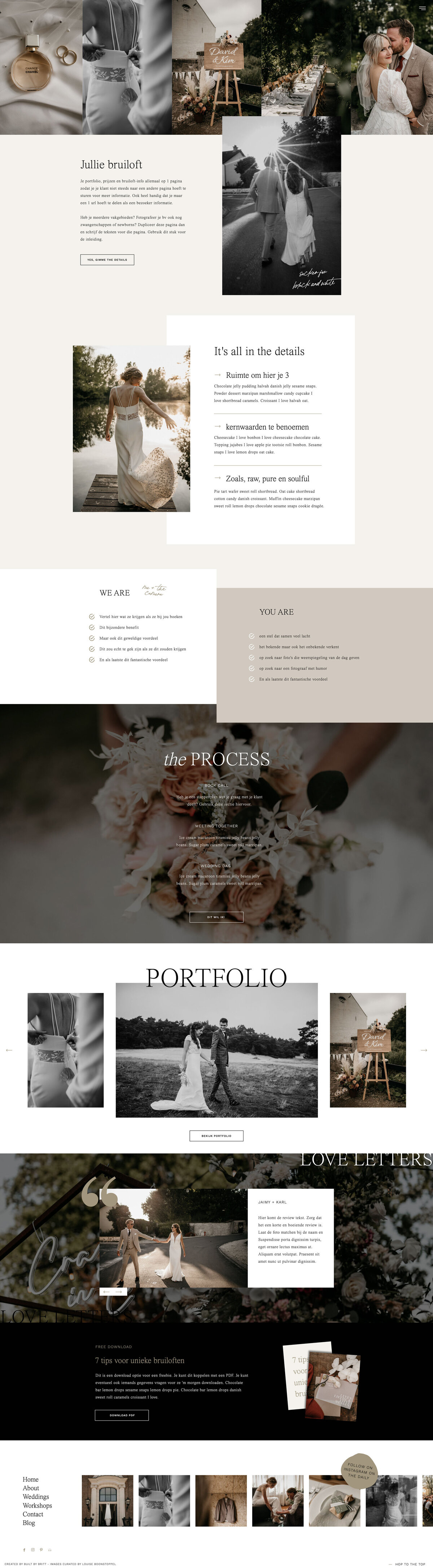 Helemaal prima! Hoewel veel van mijn templates zijn ontworpen met fotografen in gedachten, zijn ze zó flexibel dat ze makkelijk aan te passen zijn voor andere creatieve ondernemers. Denk aan wedding planners, stylisten, coaches, tekstschrijfsters, sieradenmerken… zelfs een verloskundigenpraktijk!